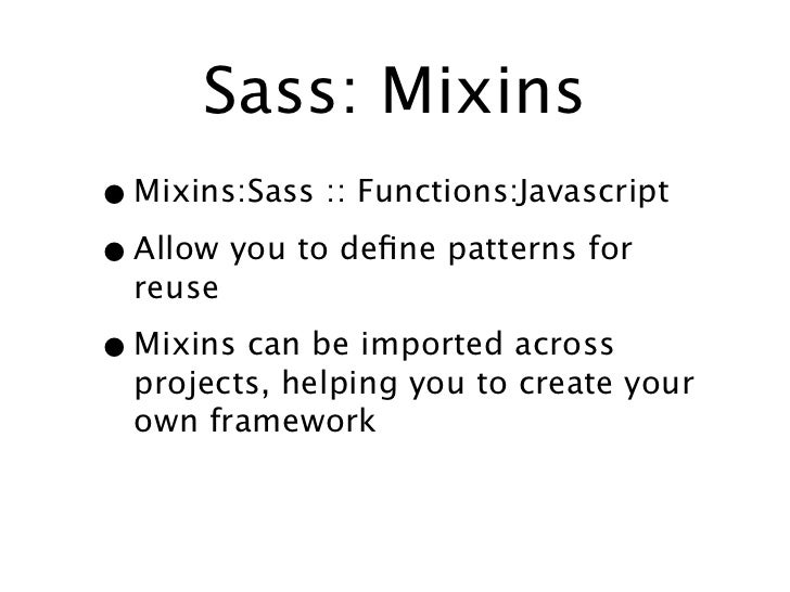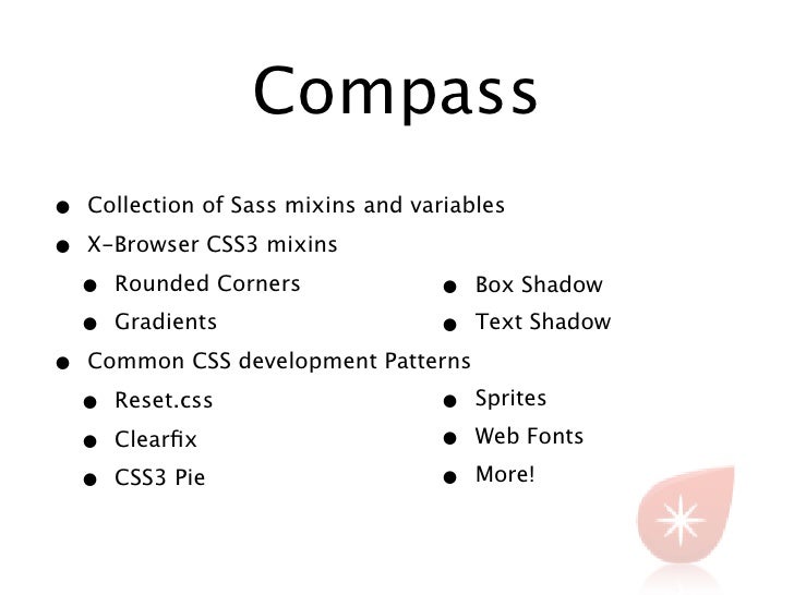 My presentation at SourceDevCon. There's a lot more you can do with Sass/Compass than just parameterize CSS.