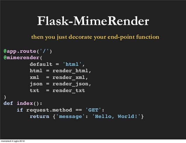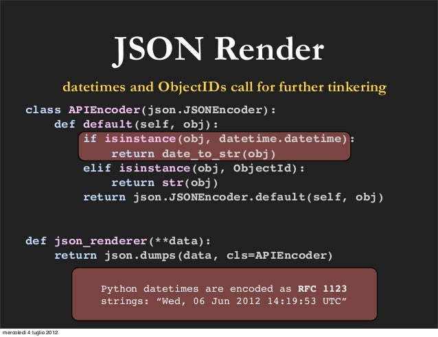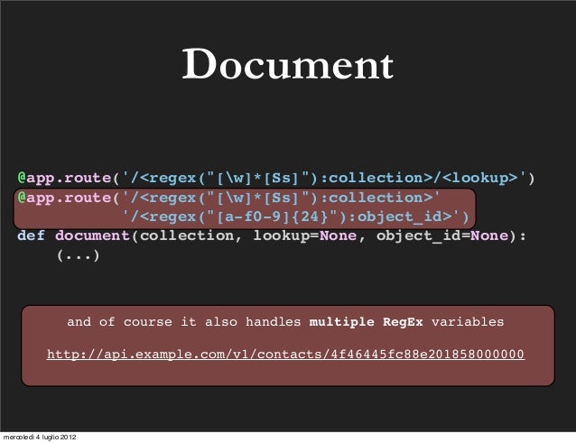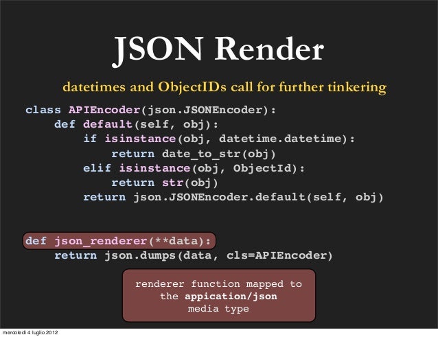 Presented at EuroPython 2012. The abstract: "In the last year we have been working on a full featured, Python powered, RESTful Web API. We learned quite a few things on REST best patterns, and we got a chance to put Python’s renowned web capabilities under review, even releasing a couple Open Source projects in the process. In my talk I will share what we learned. We will consider ‘pure’ REST API design and its many hurdles. We will look at what Python as to offer in this field and finally, we will dig further down by looking at some of the code we developed. Some of the technologies/stacks I’ll cover are (in no particular order): Flask, PyMongo, MongoDB, REST, JSON, XML, Heroku. Did you know? Like it or not, there is going to be a REST API in your future."