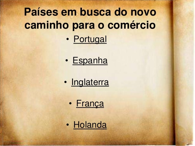 8. 8. Países em busca do novocaminho para o comércio • Portugal • Espanha • Inglaterra • França • Holanda