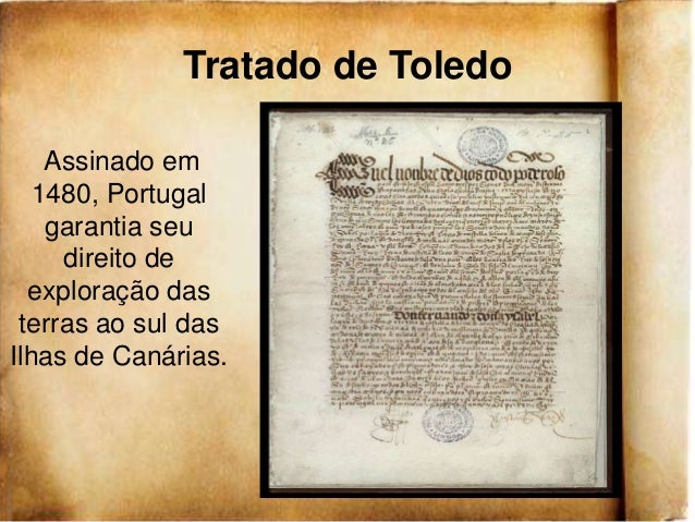 16. 16. Tratado de Toledo Assinado em 1480, Portugal garantia seu direito de exploração das terras ao sul dasIlhas de Canárias.