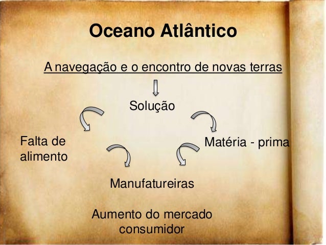 3. 3. Oceano Atlântico A navegação e o encontro de novas terras SoluçãoFalta de Matéria - primaalimento Manufatureiras Aumento do mercado consumidor