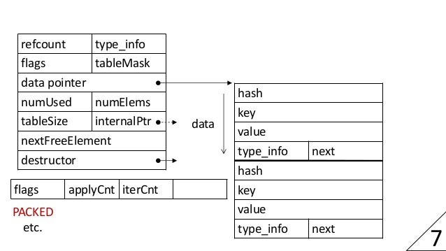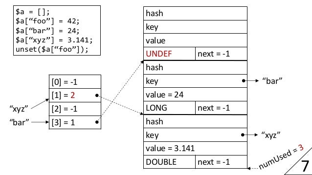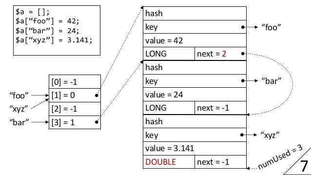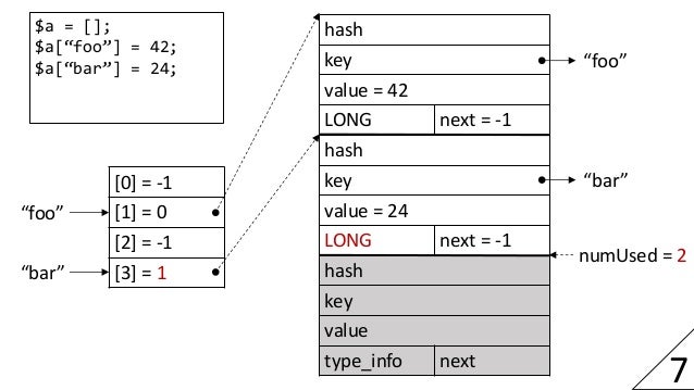 As a result of an engine rewrite with focus on more efficient data structures, PHP 7 offers much improved performance and memory usage. This session describes important aspects of the new implementation and how it compares to PHP 5. A particular focus will be on the representation of values, arrays and objects.