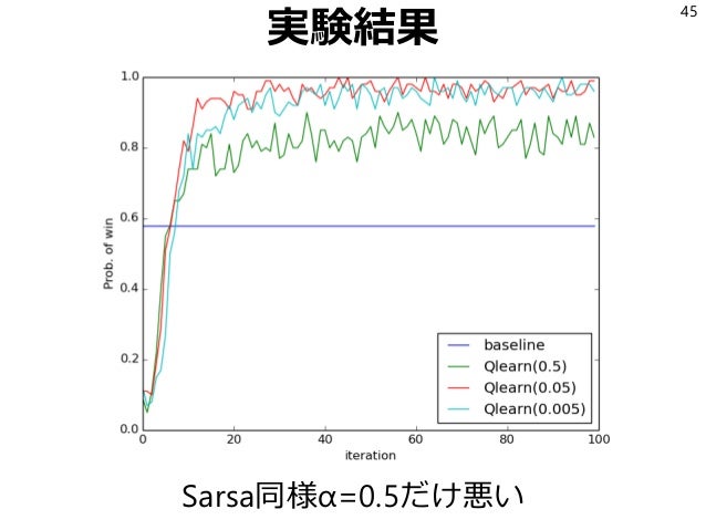 45. 45. 実験結果 Sarsa同様α=0.5だけ悪い 45