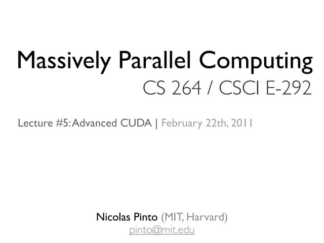 1. 1. Massively Parallel Computing CS 264 / CSCI E-292 Lecture #2: Architecture, Theory & Patterns | February 1st, 2011 Nicolas Pinto (MIT, Harvard) pinto@mit.edu
