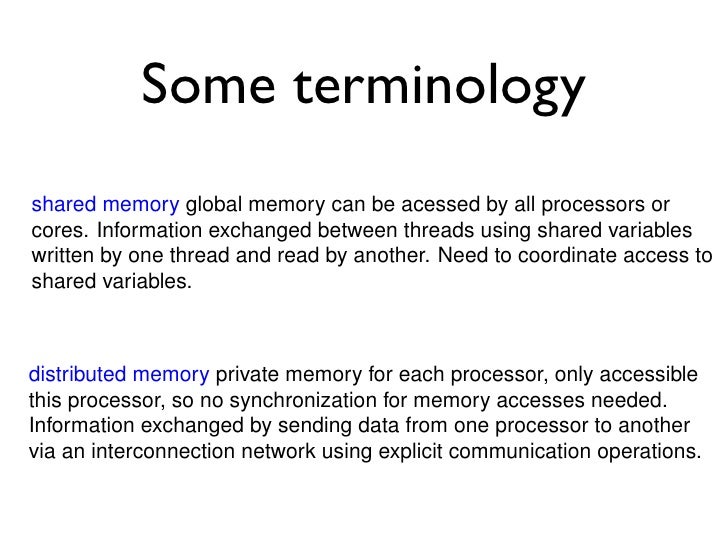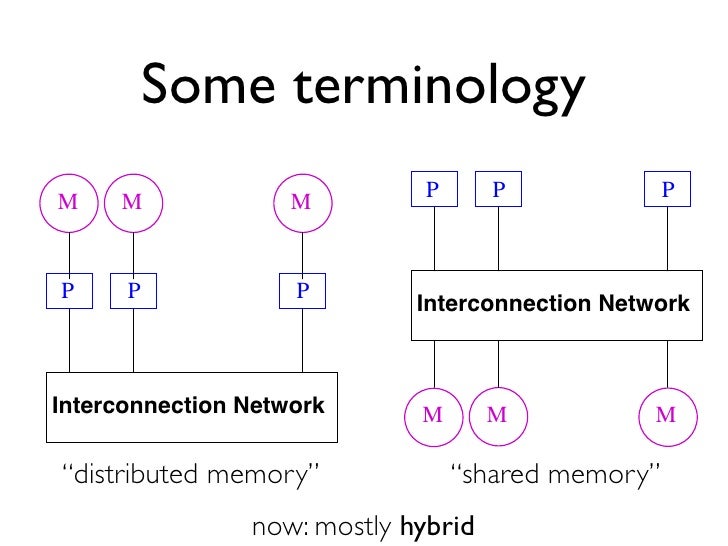 106. 106. dvariables. variables. uted memory private memory for each processor, only acces uted memory private memory for each processor, only acce Some terminology ocessor, so no synchronization for memory accesses neede ocessor, so no synchronization for memory accesses neede mationexchanged by sending data from one processor to ano ation exchanged by sending data from one processor to an interconnection network using explicit communication opera interconnection network using explicit communication opera M M M M M M PP PP PP PP PP PP Interconnection Network Interconnection Network Interconnection Network Interconnection Network M M M M M M “distributed memory” approach increasingly common “shared memory” d approach increasingly common now: mostly hybrid