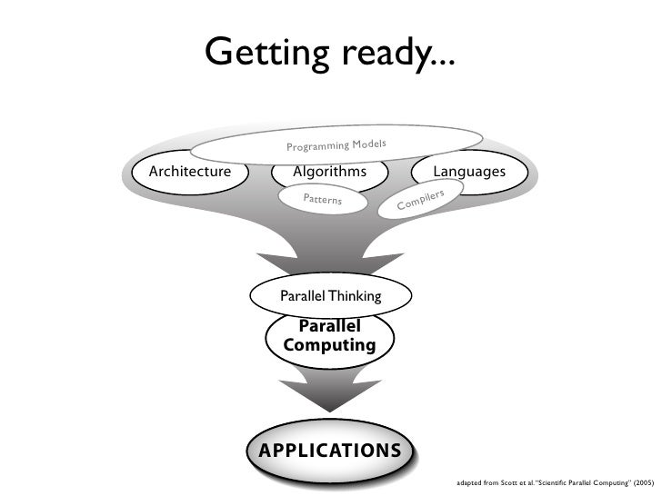 20. 20. Getting ready... Programming Models Architecture Algorithms Languages Patterns il ers C omp Parallel Thinking Parallel Computing APPLICATIONS adapted from Scott et al. “Scientific Parallel Computing” (2005)