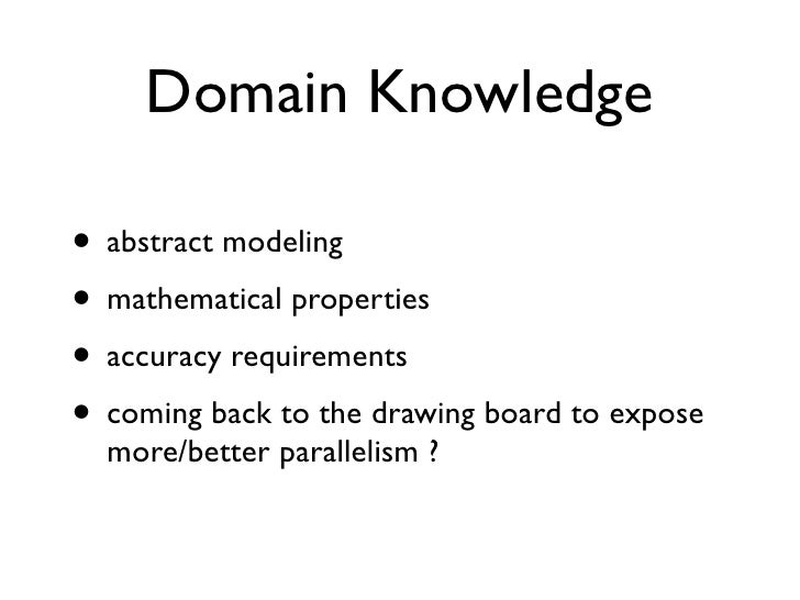25. 25. Domain Knowledge • abstract modeling • mathematical properties • accuracy requirements • coming back to the drawing board to expose more/better parallelism ?