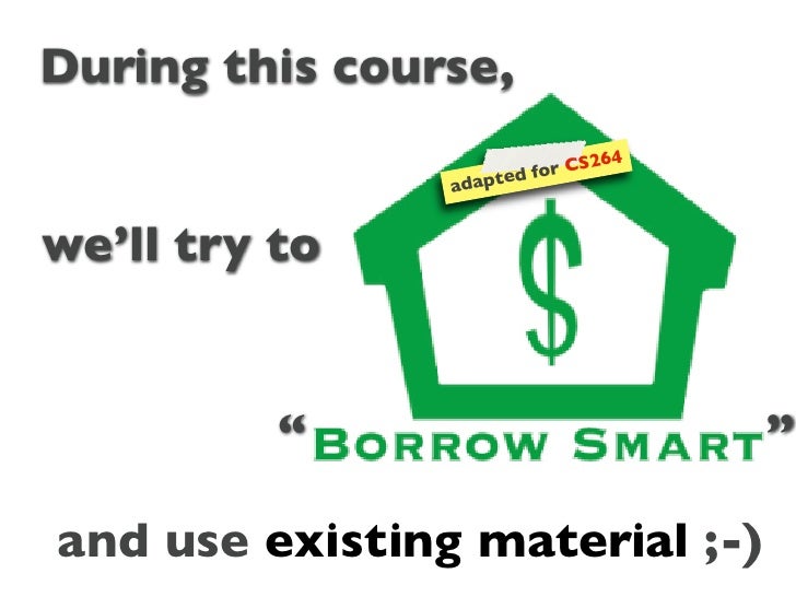 3. 3. During this course, r CS264 adapted fo we’ll try to “ ” and use existing material ;-)