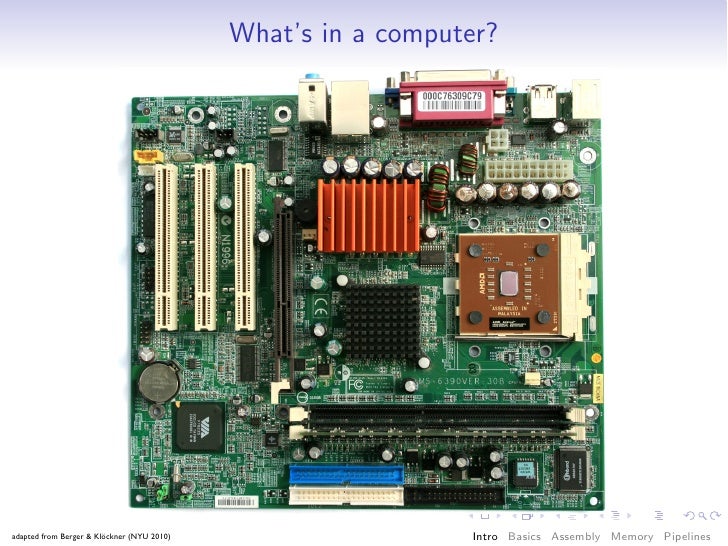 33. 33. What’s in a computer? adapted from Berger & Klöckner (NYU 2010) Intro Basics Assembly Memory Pipelines