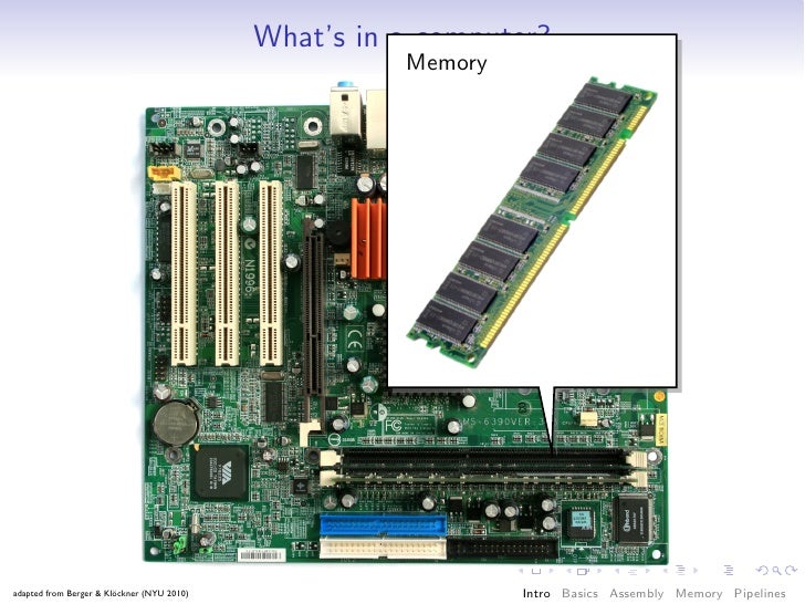 34. 34. What’s in a computer? Memory adapted from Berger & Klöckner (NYU 2010) Intro Basics Assembly Memory Pipelines