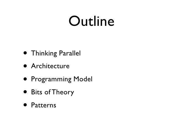 4. 4. Outline • Thinking Parallel • Architecture • Programming Model • Bits of Theory • Patterns