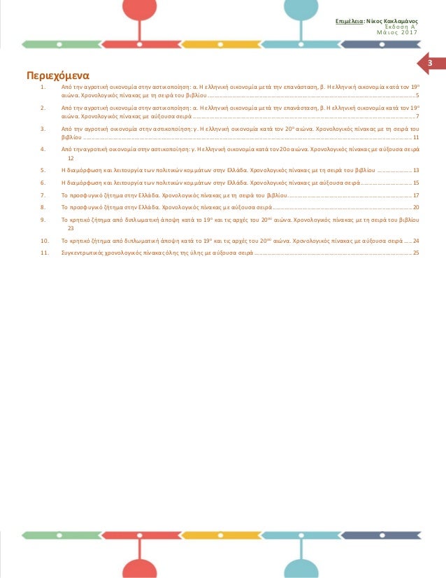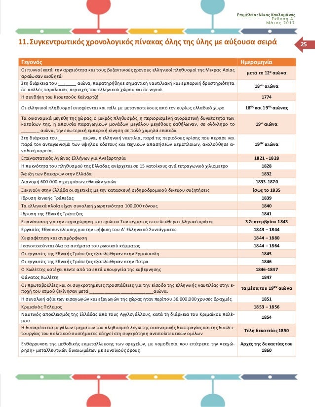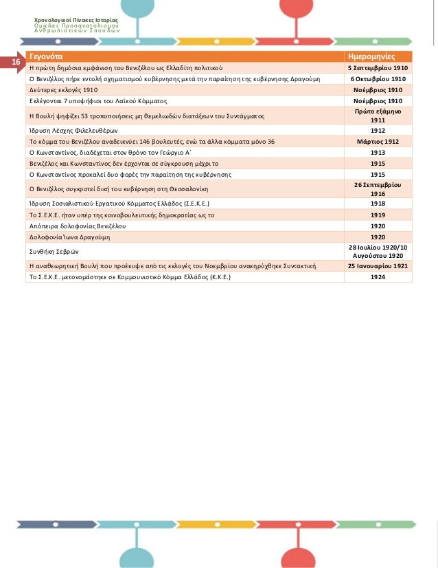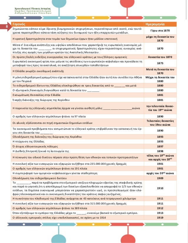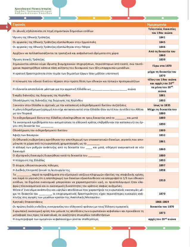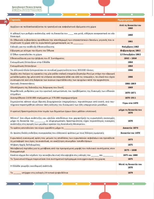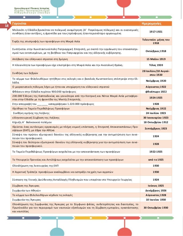 Χρονολογικοί Πίνακες Ιστορίας Γ΄ Λυκείου Ανθρωπιστικών Σπουδών ανά κεφάλαιο με τη σειρά που εμφανίζονται στη ροή της διδακτέας ύλης καθώς και με αύξουσα σειρά. Συγκεντρωτικός πίνακας με αύξουσα σειρά.