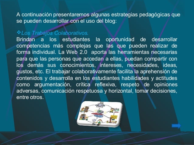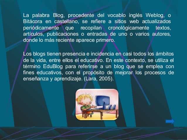 Diapositiva para Diplomado Corefo sobre estrategias Educativas para el Uso del Blog.