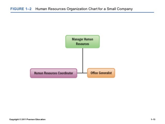 13. 13. FIGURE 1–2 Human Resources Organization Chart for a Small CompanyCopyright © 2011 Pearson Education 1–13