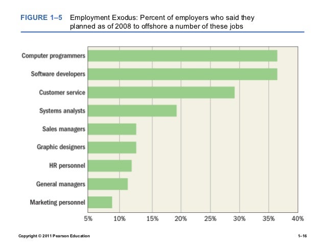 16. 16. FIGURE 1–5 Employment Exodus: Percent of employers who said they planned as of 2008 to offshore a number of these jobsCopyright © 2011 Pearson Education 1–16