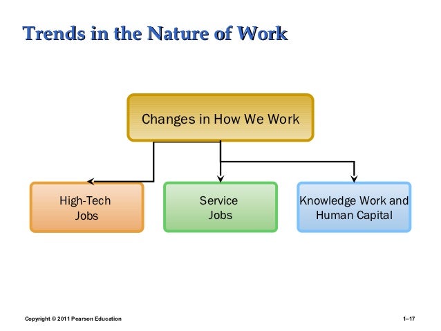 17. 17. Trends in the Nature of Work Changes in How We Work High-Tech Service Knowledge Work and Jobs Jobs Human CapitalCopyright © 2011 Pearson Education 1–17