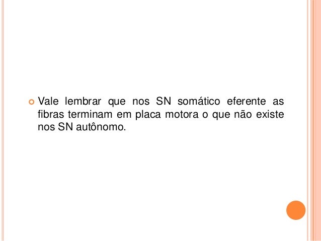 13. 13.  Vale lembrar que nos SN somático eferente as fibras terminam em placa motora o que não existe nos SN autônomo.