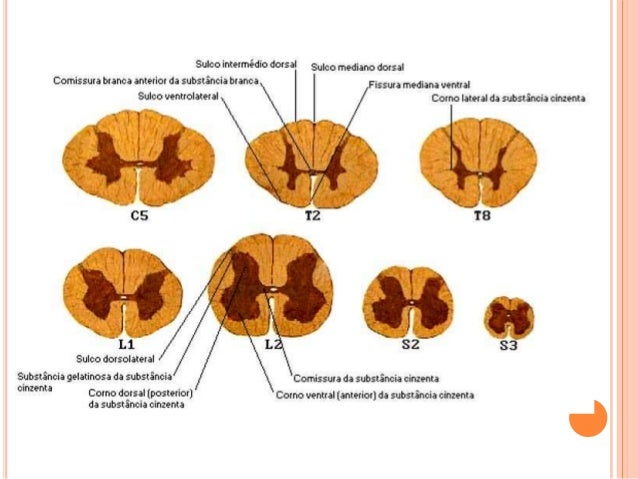 15. 15.  Na medula eles ocorrem do 1º ao 12º segmentos torácicos (T1 até T12), nos dois primeiros segmentos lombares (L1 e L2), e nos segmentos S2, S3 e S4 da medula sacral.  Na porção tóraco-lombar (T1 a T12), os neurônios pré-ganglionares se agrupam formando uma coluna muito evidente denominada coluna lateral, situadas entre as colunas anterior e posterior da medula.