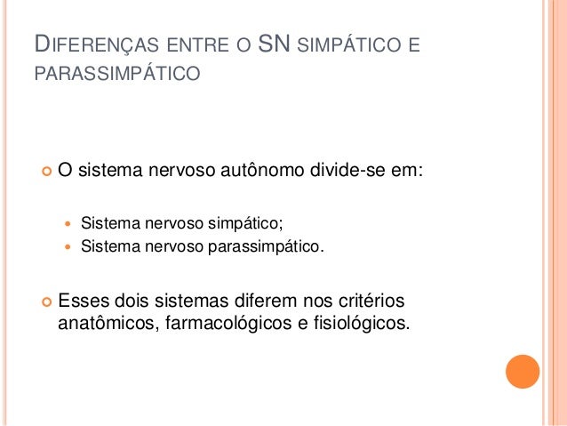 20. 20. DIFERENÇAS ENTRE O SN SIMPÁTICO E PARASSIMPÁTICO  O sistema nervoso autônomo divide-se em:  Sistema nervoso simpático;  Sistema nervoso parassimpático.  Esses dois sistemas diferem nos critérios anatômicos, farmacológicos e fisiológicos.