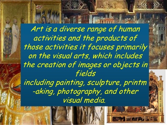 2. 2. YOUR TOPIC GOES HERE Art is a diverse range of human • Your Subtopics Go Here activities and the products of those activities it focuses primarily on the visual arts, which includes the creation of images or objects in fields including painting, sculpture, printm -aking, photography, and other visual media.