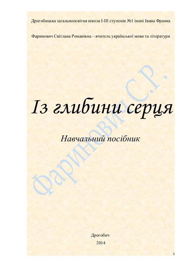 1. 1. Дрогобицька загальноосвітня школа І-ІІІ ступенів №1 імені Івана Франка Фаринович Світлана Романівна – вчитель української мови та літератури Із глибини серця Навчальний посібник Дрогобич 2014 1