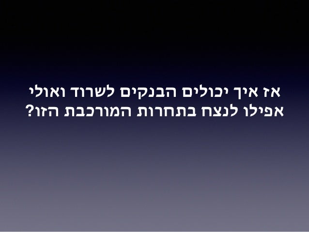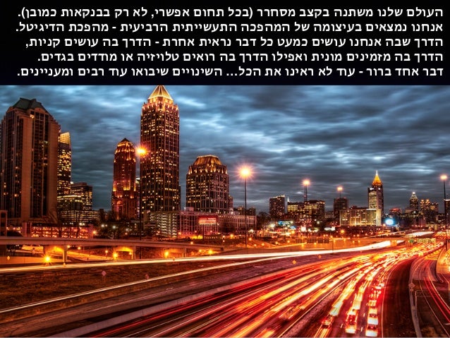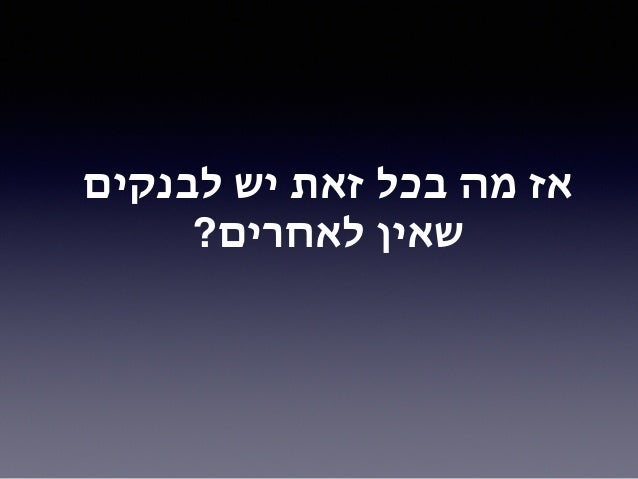 הסיפור מאחורי תעשיית הבנקאות ונסיון לחזות את העתיד שלה, כולל טיפים ותובנות לבנקאות המסורתית ואיך היא יכולה להתמודד עם התחרות האגרסיבית.