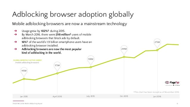 In this report, PageFair, in partnership with Priori Data, reveals how adblock adoption is spreading to mobile devices across the globe. This analysis is based on empirical data, and demonstrates that twice as many people are blocking ads on mobile browsers than on desktop browsers worldwide.