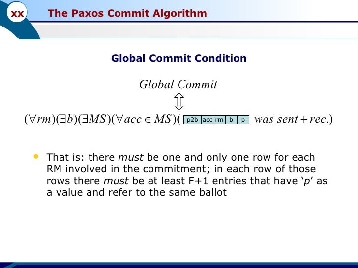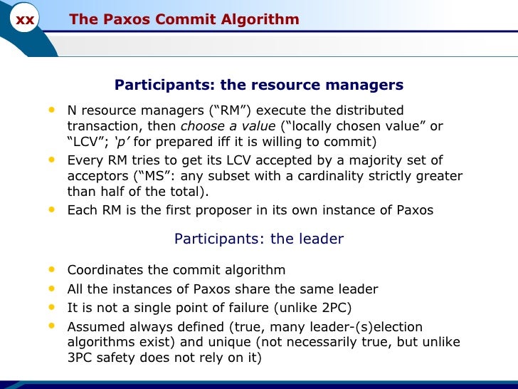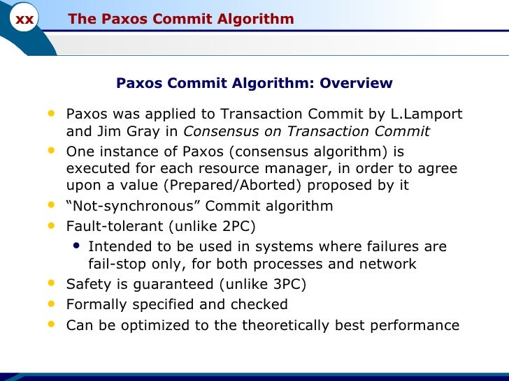 This is the presentation I used to give a seminar about the "Paxos Commit" algorithm. It is one of Leslie Lamport's works (in this case, a joint work between him and Jim Gray). You can find the original paper here: