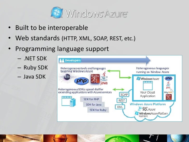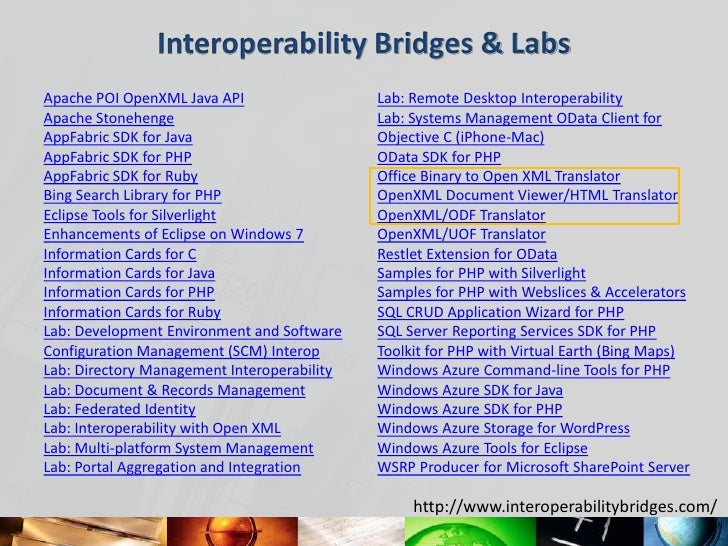 • Web standards (HTTP, XML, SOAP, REST, etc.)