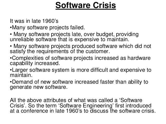 2. 2. Software Crisis It was in late 1960’s •Many software projects failed. • Many software projects late, over budget, providing unreliable software that is expensive to maintain. • Many software projects produced software which did not satisfy the requirements of the customer. •Complexities of software projects increased as hardware capability increased. •Larger software system is more difficult and expensive to maintain. •Demand of new software increased faster than ability to generate new software. All the above attributes of what was called a ‘Software Crisis’. So the term ‘Software Engineering’ first introduced at a conference in late 1960’s to discuss the software crisis.