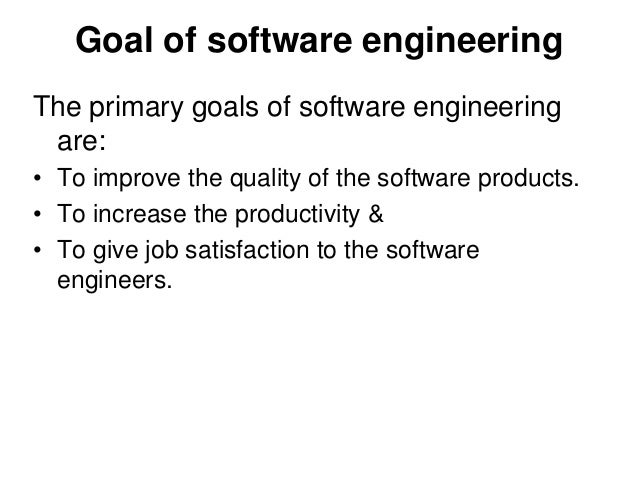 5. 5. Goal of software engineering The primary goals of software engineering are: • To improve the quality of the software products. • To increase the productivity & • To give job satisfaction to the software engineers.