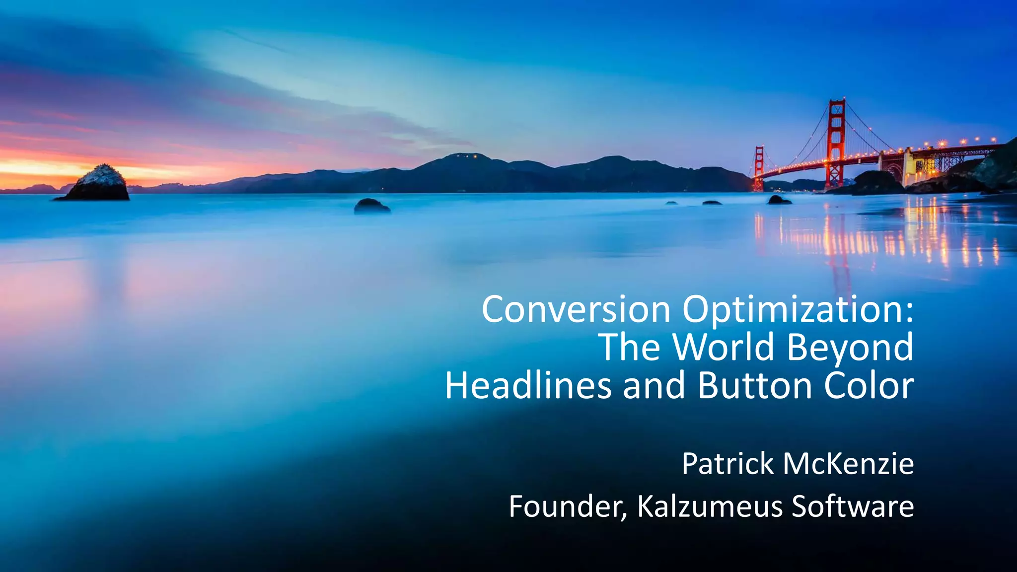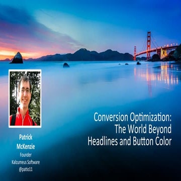 1. 1. Conversion Optimization: The World Beyond Headlines and Button Color Patrick McKenzie Founder, Kalzumeus Software