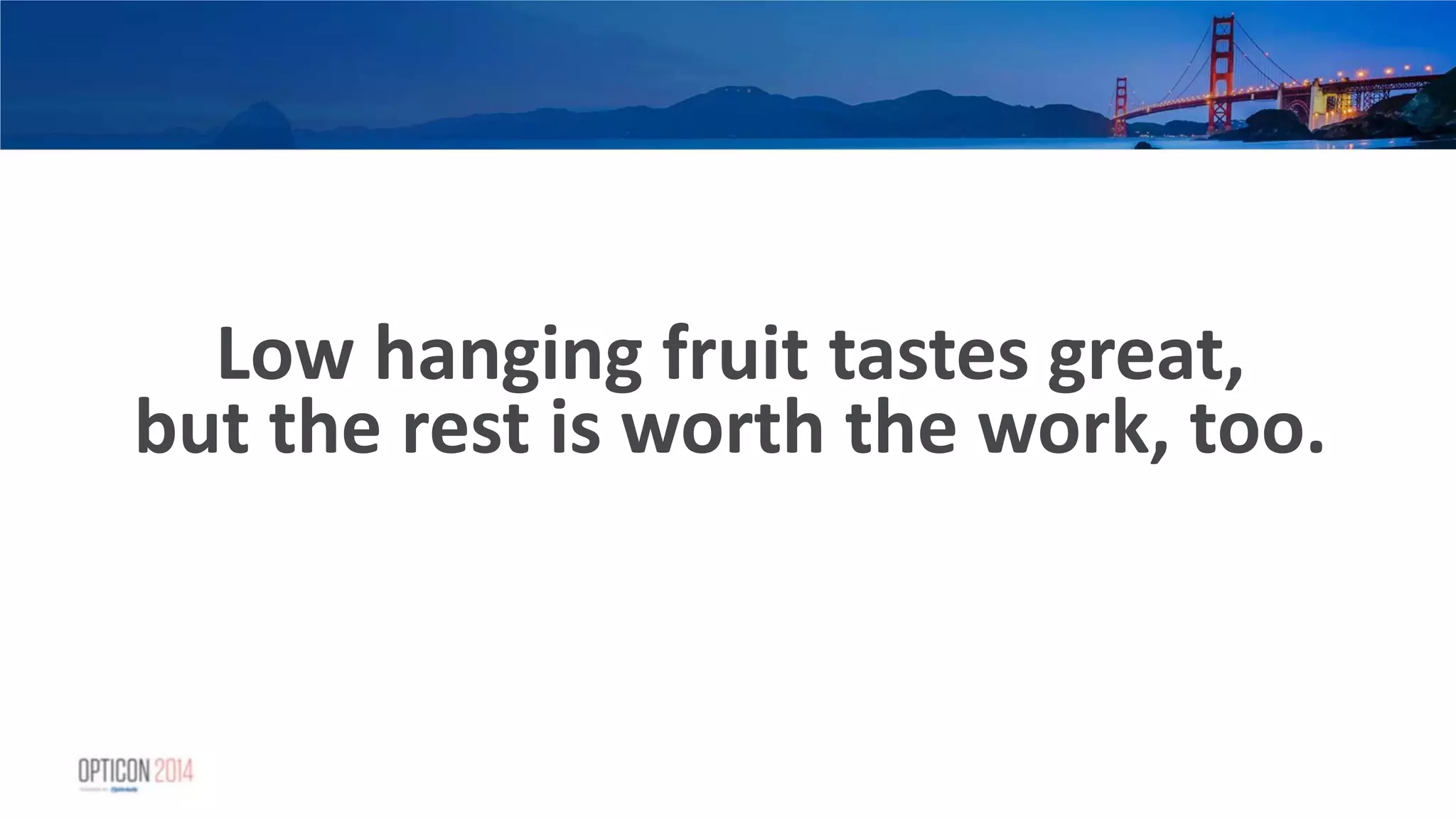 2. 2. Low hanging fruit tastes great, but the rest is worth the work, too.