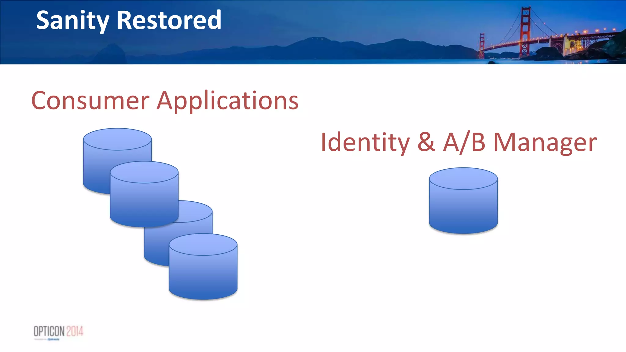 36. 36. Sanity Restored Consumer Applications Identity & A/B Manager