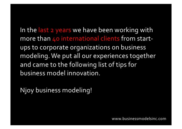 How can you best do business model innovation? We selected 10 tips from our client work in the last 2 years to share with you. Njoy business modeling!