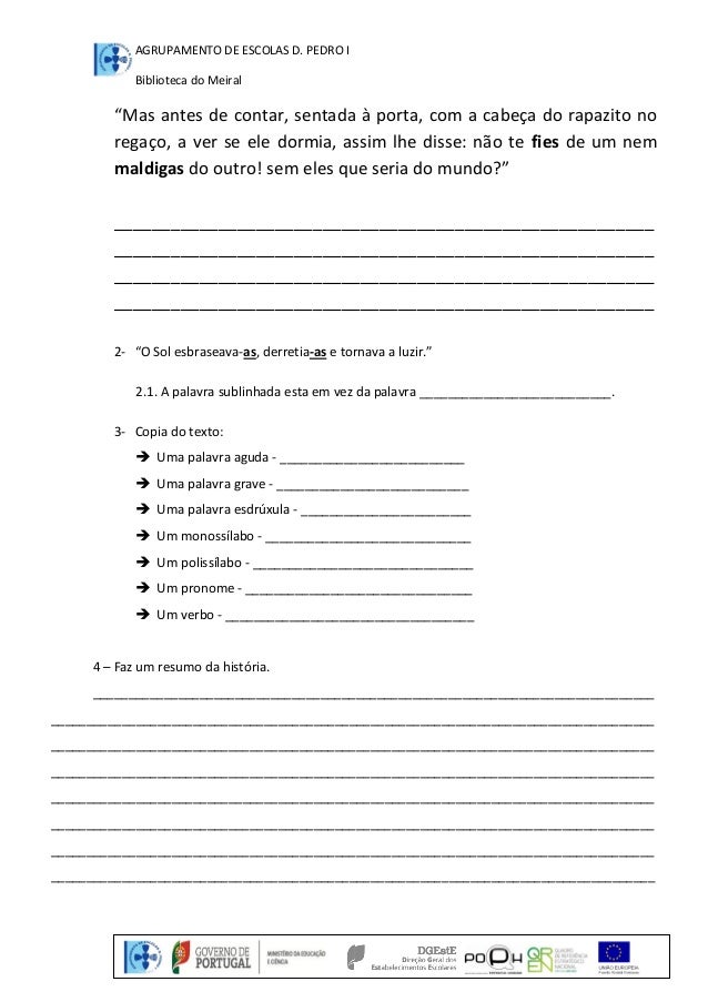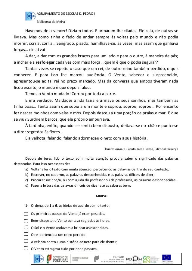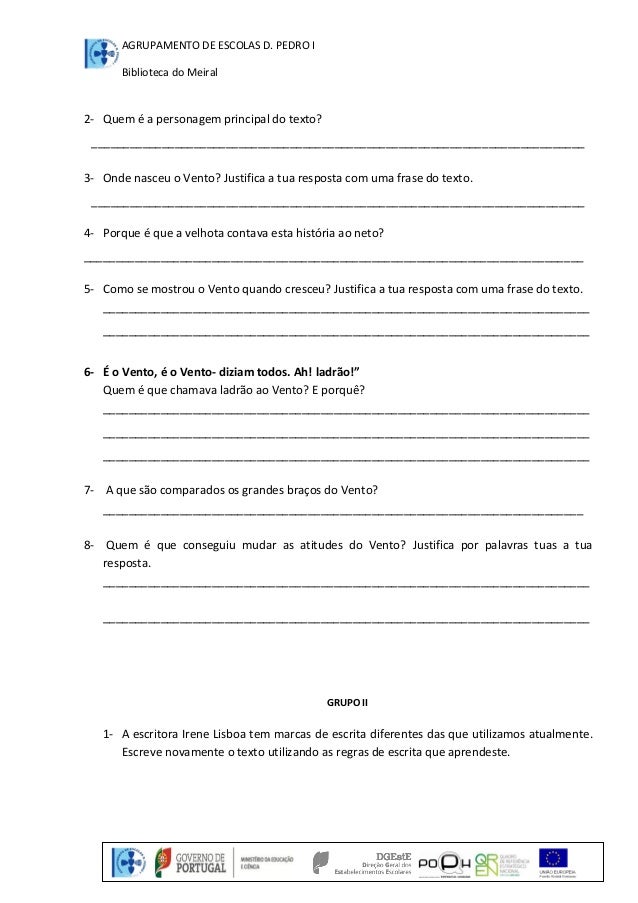 O vento, Ficha de Trabalho da obra literária "Queres Ouvir? Eu Conto! de Irene Lisboa.