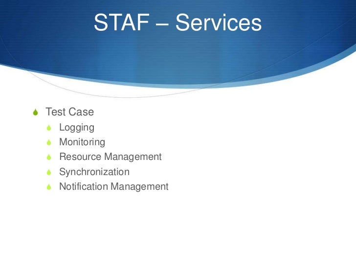 5. 5. STAF – Services S Test Case S Logging S Monitoring S Resource Management S Synchronization S Notification Management