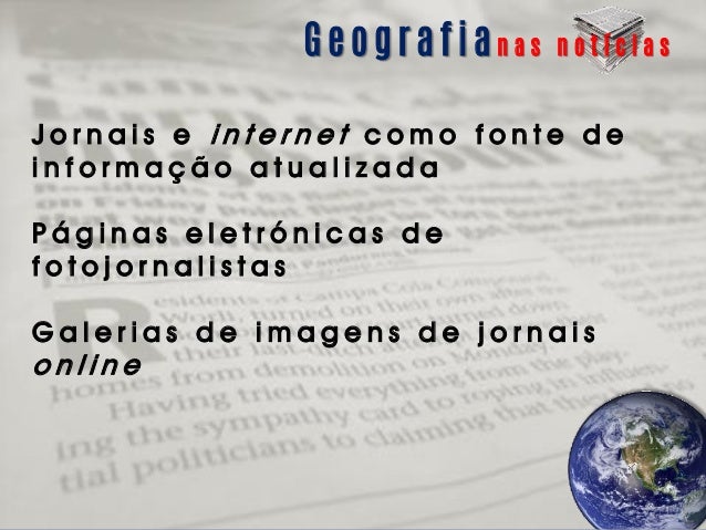 3. 3. Geografianas notícias Jornais e internet como fonte de informação atualizada Páginas eletrónicas de fotojornalistas Galerias de imagens de jornais online