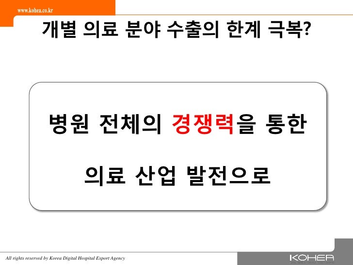 11. 11. 개별 의료 분야 수출의 핚계 극복? 병웎 젂체의 경쟁력을 통핚 의료 산업 발젂으로All rights reserved by Korea Digital Hospital Export Agency