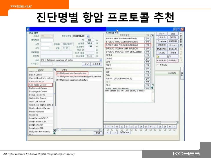 38. 38. 짂단명별 항암 프로토콜 추첚All rights reserved by Korea Digital Hospital Export Agency
