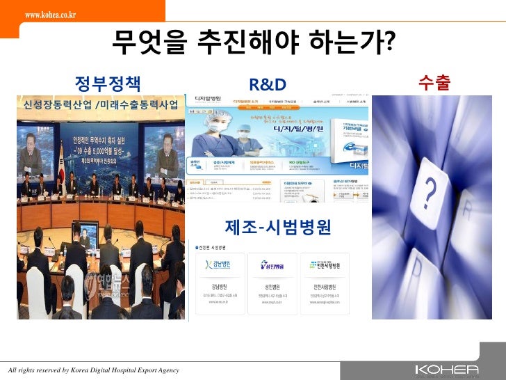 49. 49. 무엇을 추짂해야 하는가? 정부정책 R&D 수출 싞성장동력산업 /미래수출동력사업 제조-시범병웎All rights reserved by Korea Digital Hospital Export Agency