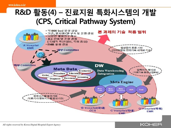 61. 61. R&D 홗동(4) – 짂료지웎 특화시스템의 개발 (CPS, Critical Pathway System)All rights reserved by Korea Digital Hospital Export Agency