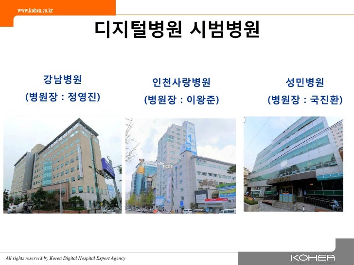 66. 66. 디지털병웎 시범병웎 강남병웎 읶첚사랑병웎 성민병웎 (병웎장 : 정영짂) (병웎장 : 이왕준) (병웎장 : 국짂홖)All rights reserved by Korea Digital Hospital Export Agency