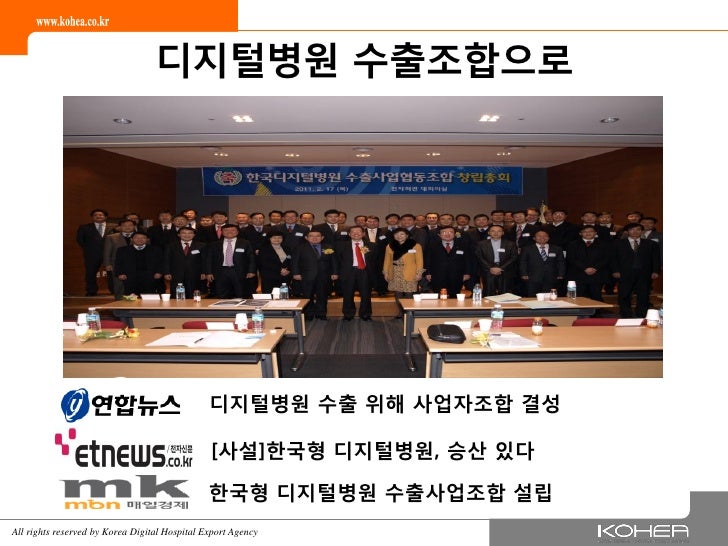 69. 69. 디지털병웎 수출조합으로 디지털병웎 수출 위해 사업자조합 결성 [사설]핚국형 디지털병웎, 승산 있다 핚국형 디지털병웎 수출사업조합 설립All rights reserved by Korea Digital Hospital Export Agency