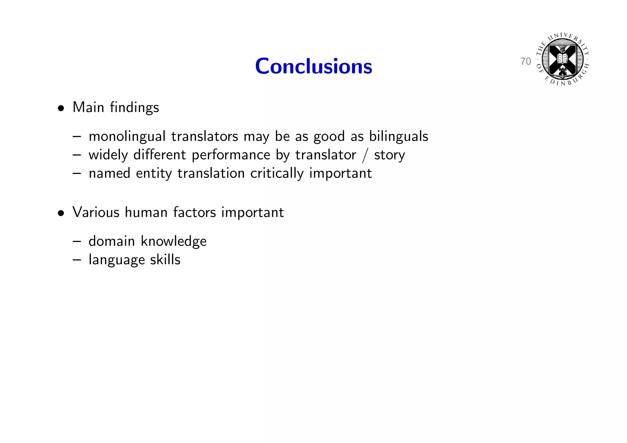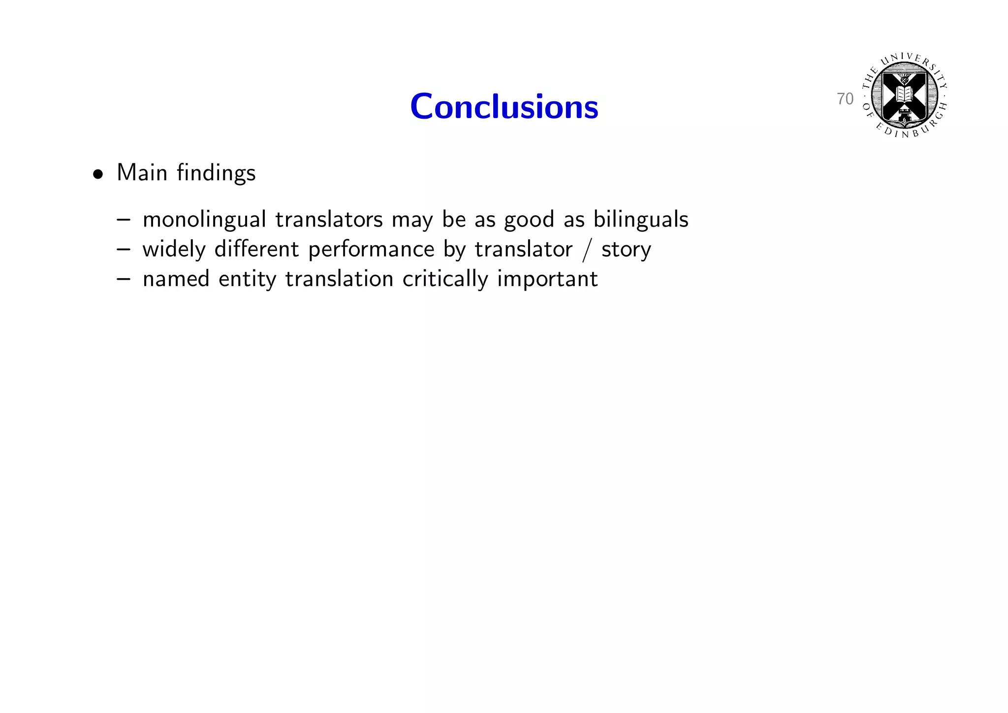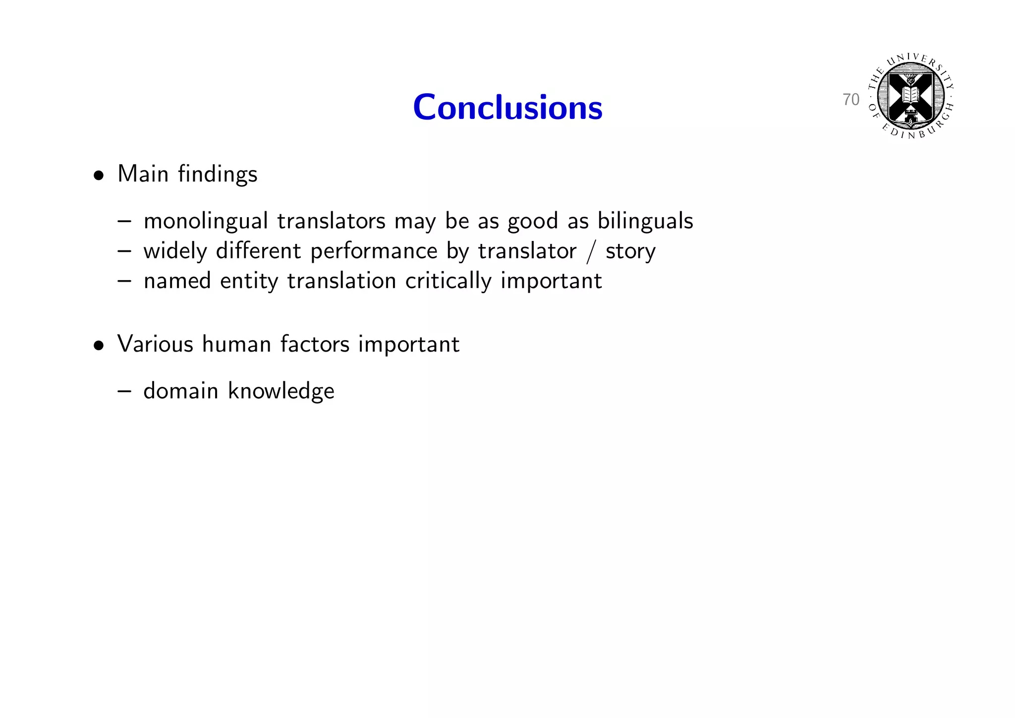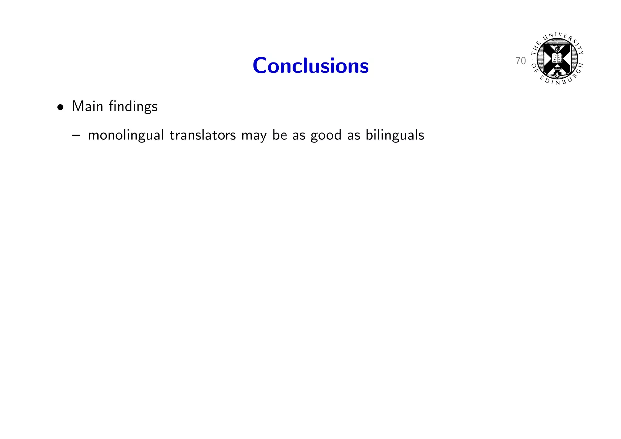 98. 98. 70 Conclusions • Main findings – monolingual translators may be as good as bilinguals