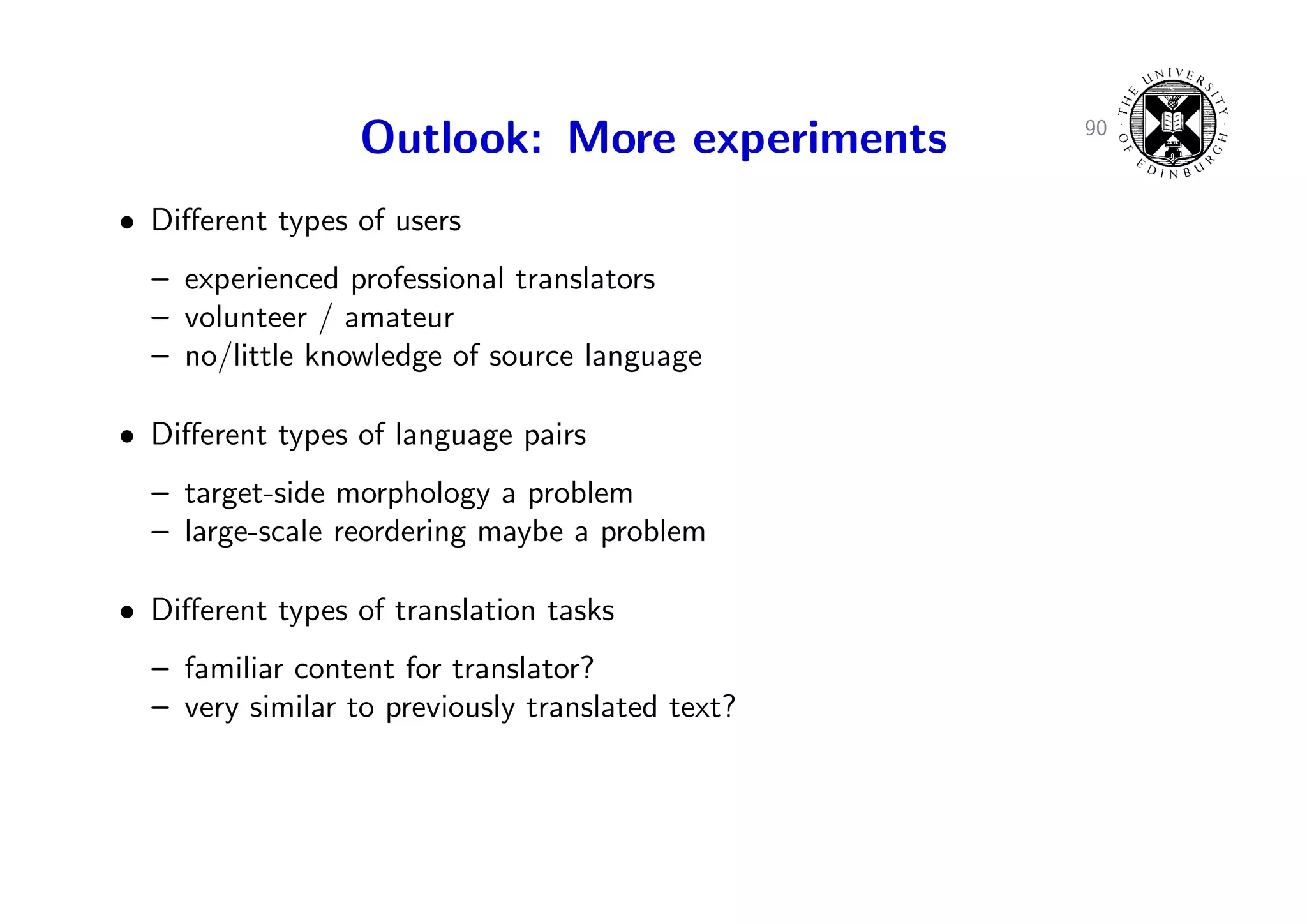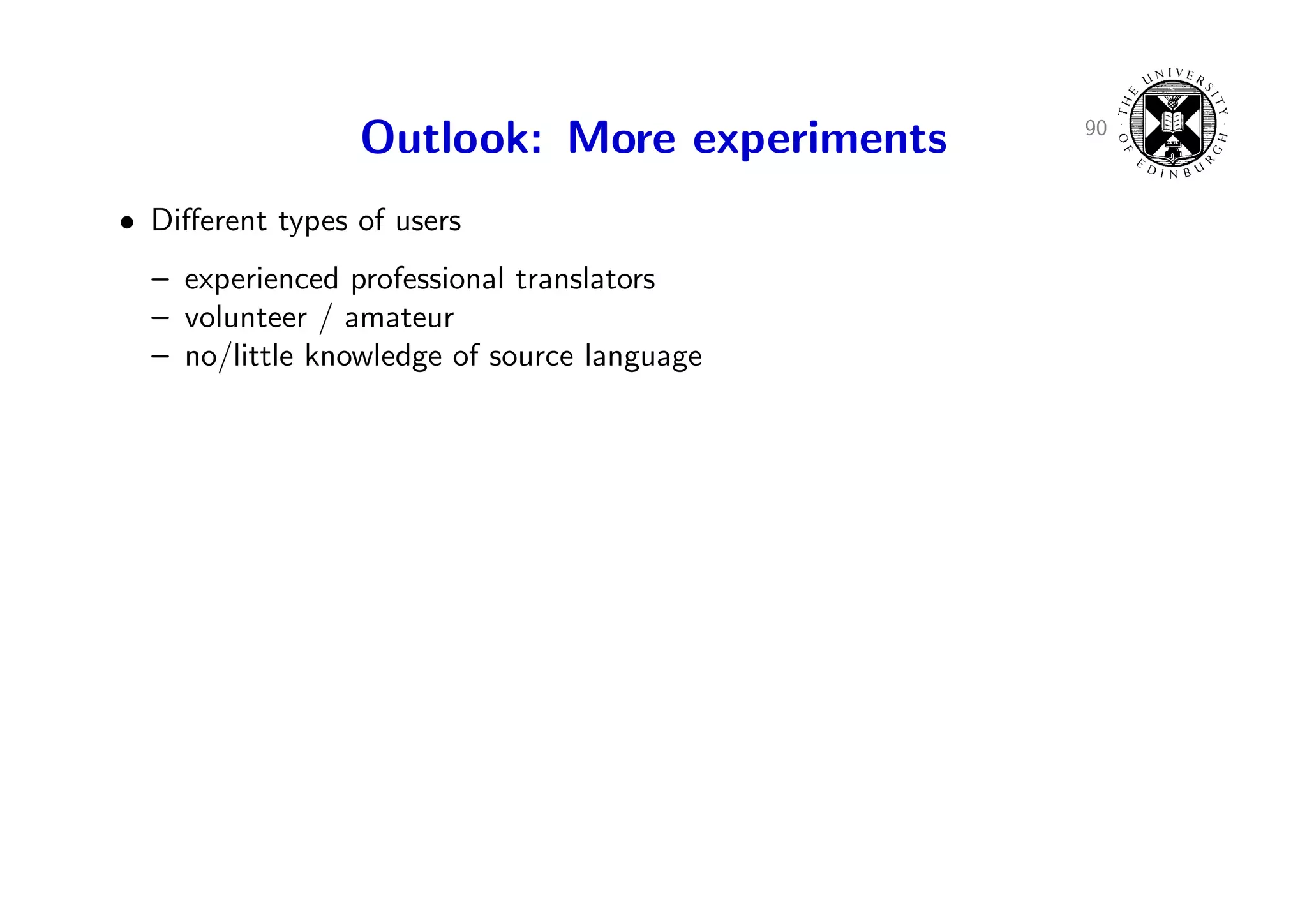 126. 126. 90 Outlook: More experiments • Different types of users – experienced professional translators – volunteer / amateur – no/little knowledge of source language