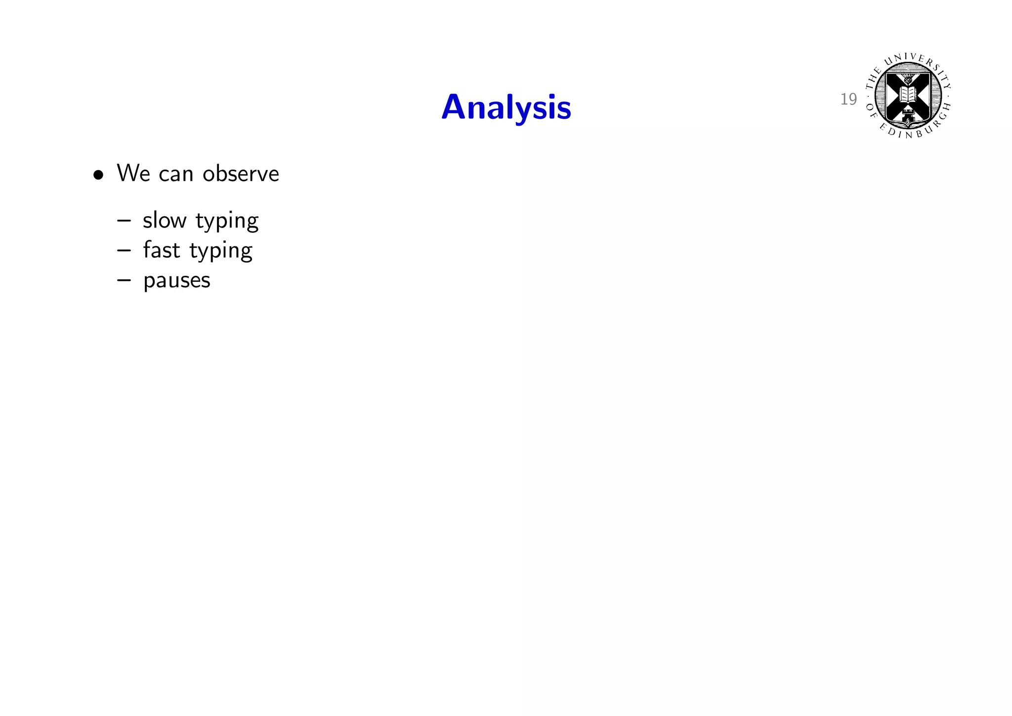 28. 28. 19 Analysis • We can observe – slow typing – fast typing – pauses