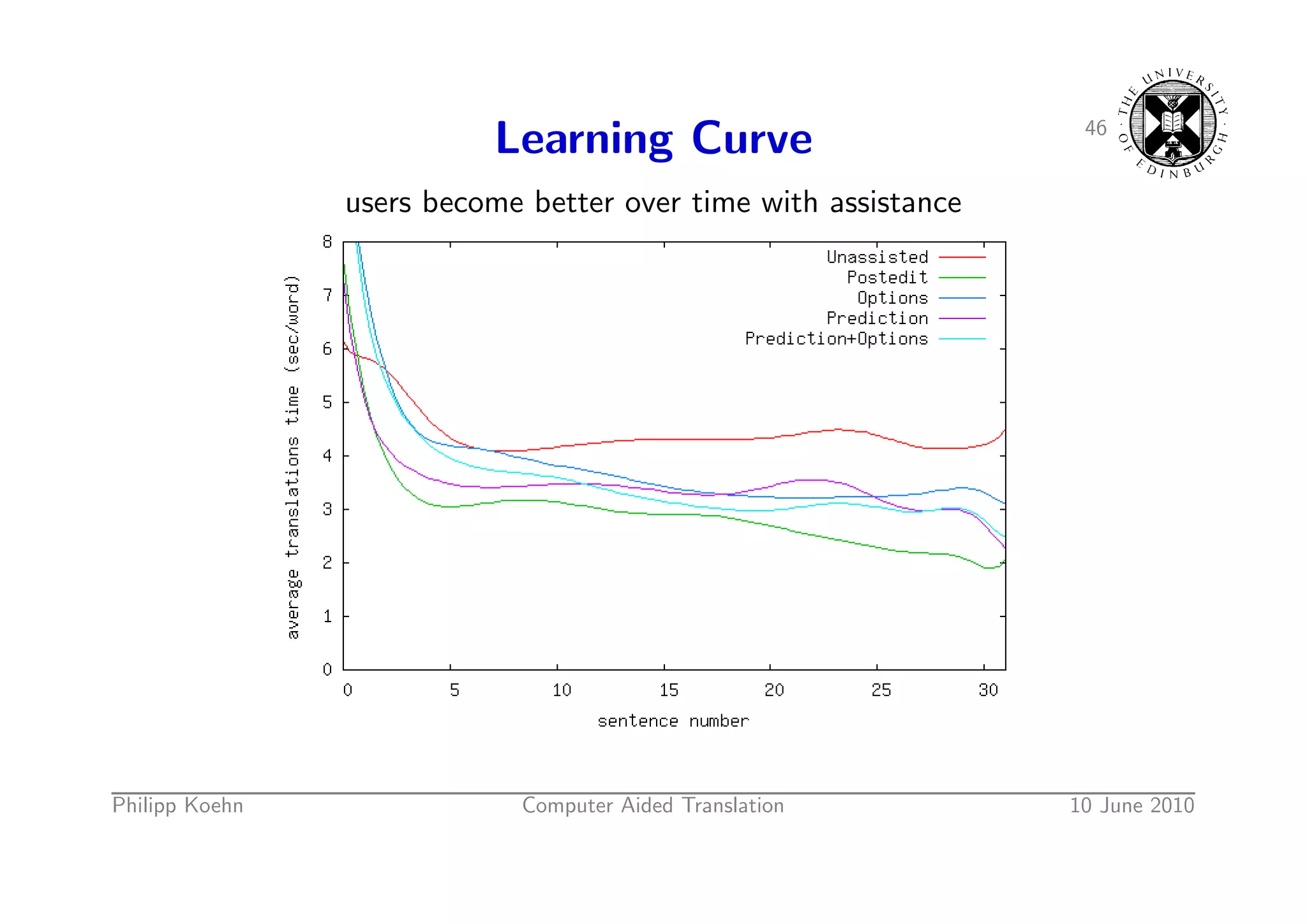 66. 66. 46 Learning Curve users become better over time with assistance Philipp Koehn Computer Aided Translation 10 June 2010