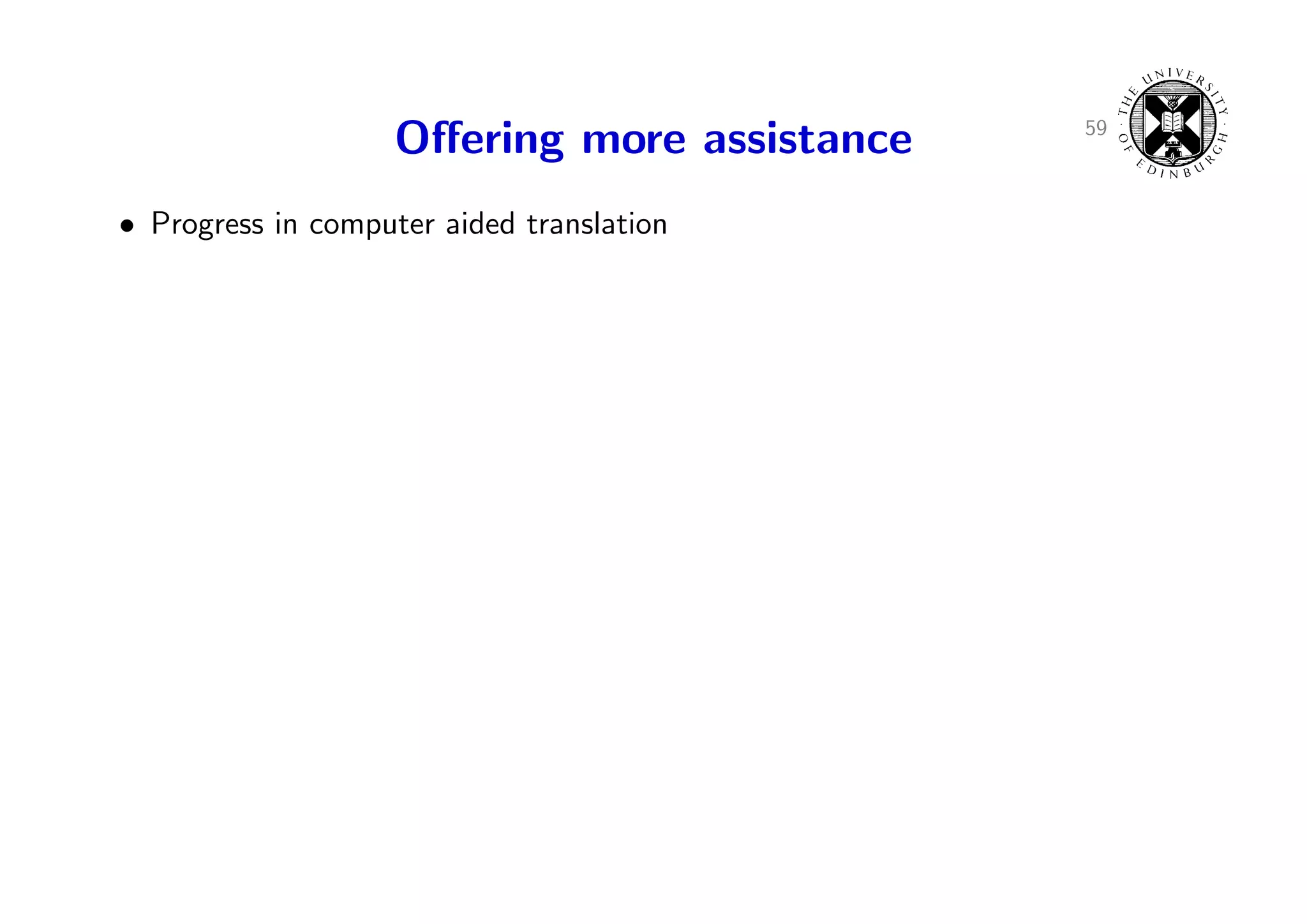 85. 85. 59 Offering more assistance • Progress in computer aided translation