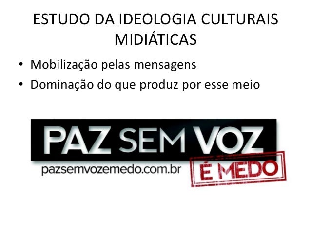ESTUDO DA IDEOLOGIA CULTURAIS           MIDIÁTICAS• Mobilização pelas mensagens• Dominação do que produz por esse meio